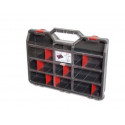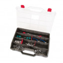 Maletín clasificador para tornillería y herramientas Tayg Nº48-26 realizado en polipropileno y tapa transparente de policarbonato y 21 separadores de color rojo.