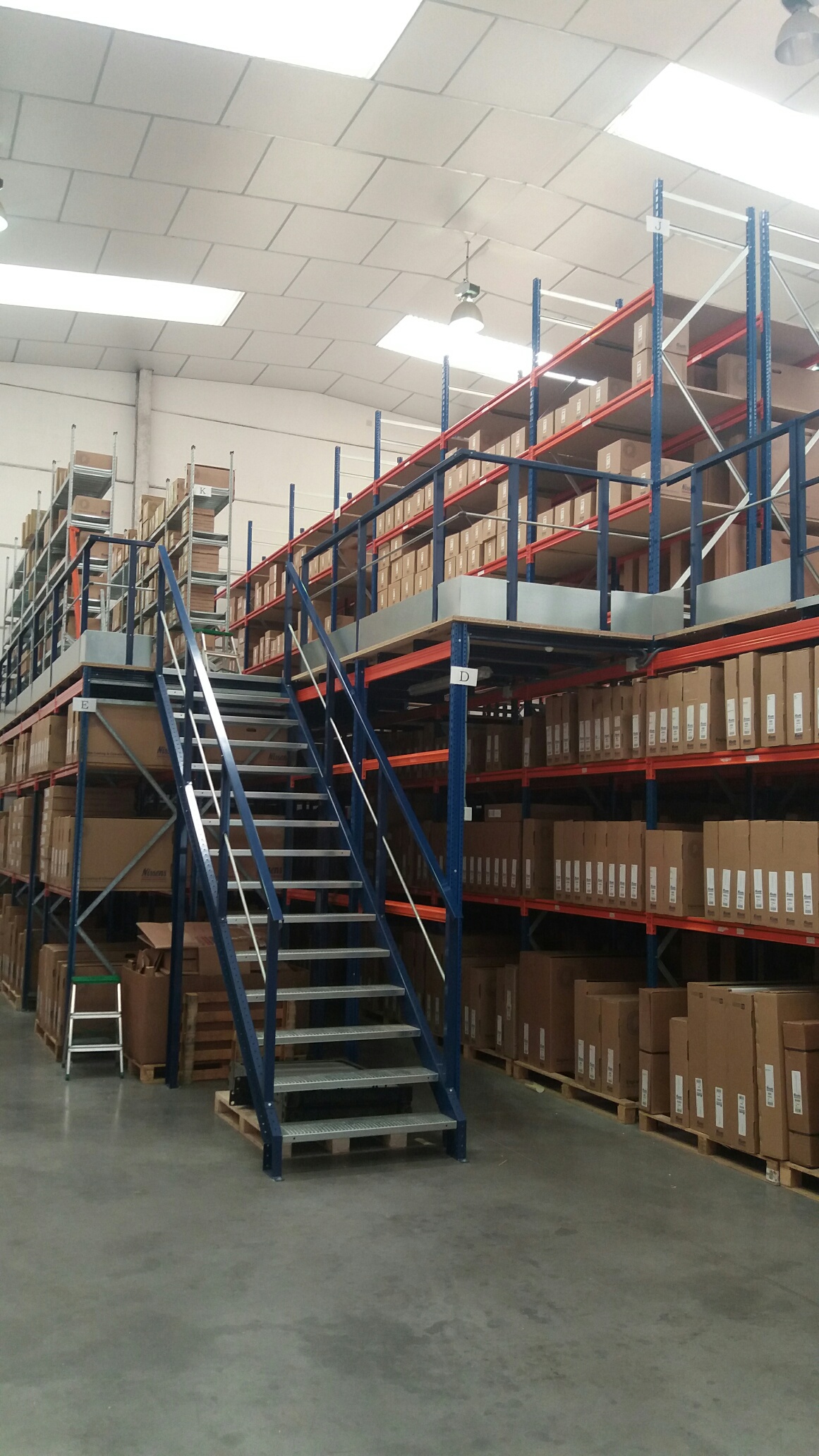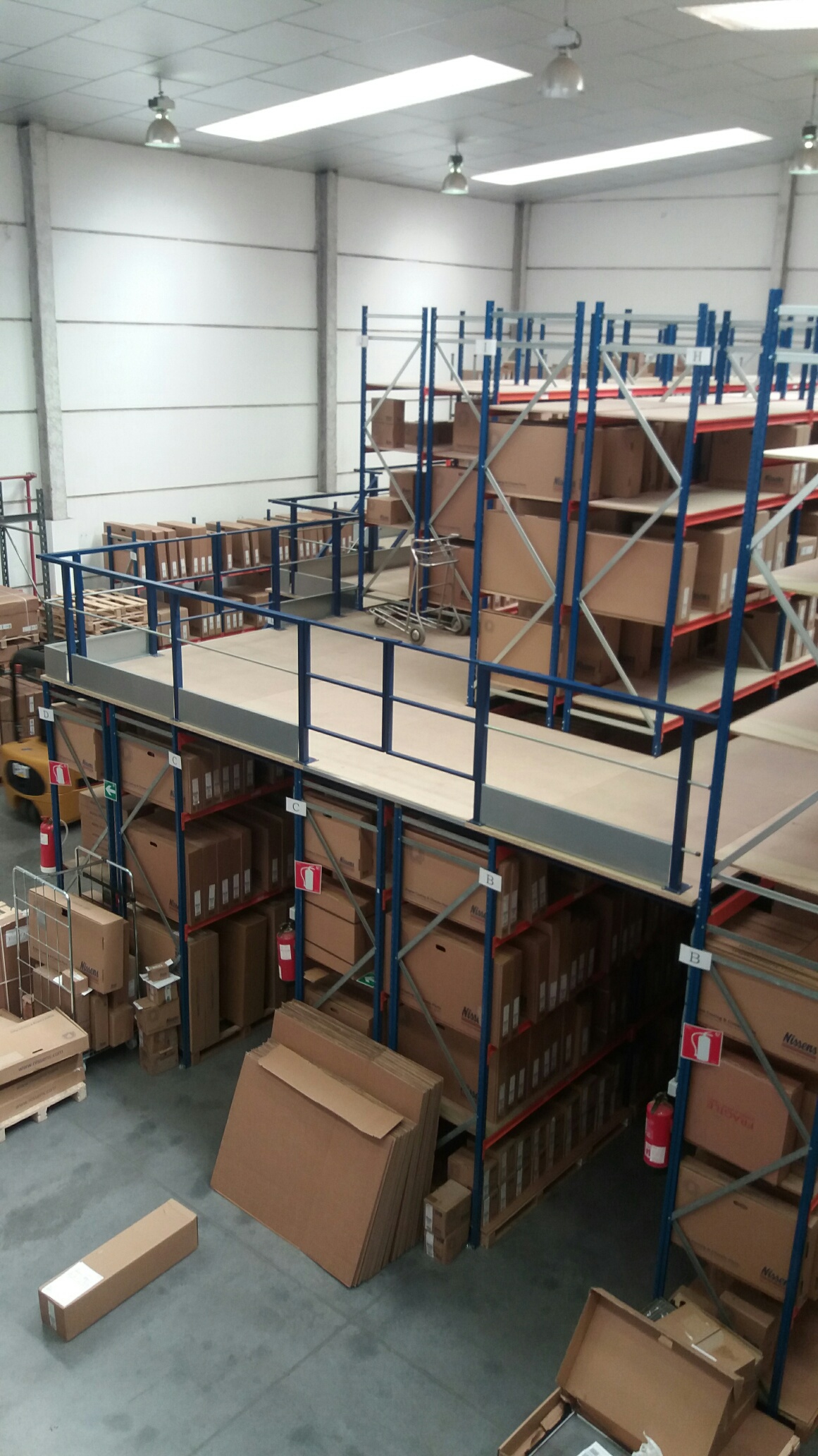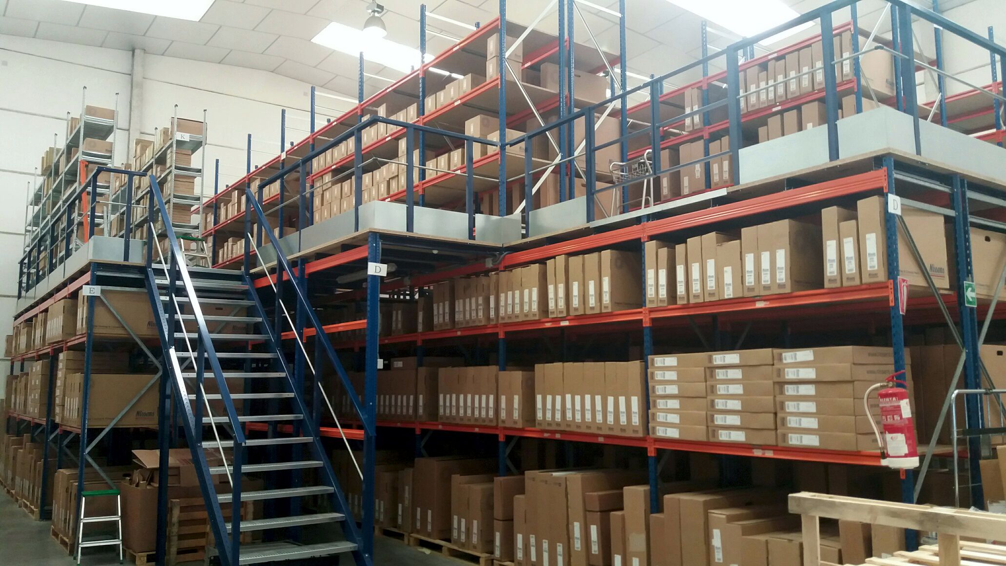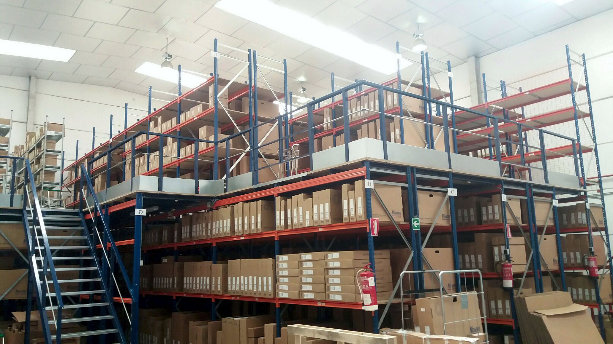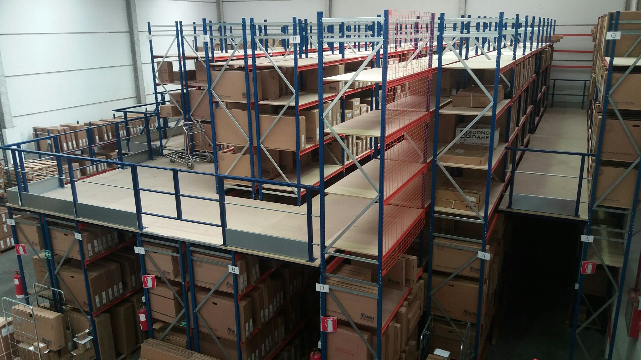 Realizamos una instalación de Pasillos Elevados para almacenar recambios del sector aeronáutico, maximizando el uso de su altura con la creación de dos plantas. Aprovechamos al máximo el espacio facilitando los accesos con pasillos e instalando mallas anticaidas para asegurar la seguridad.