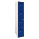 Taquilla metálica de 4 puertas ideal para vestuarios, muy robusta y de fácil montaje. Cuerpo gris y puertas azules. Posibilidad de ampliar con varios módulos. Cada módulo mide 180 cm de altura, 30 cm de ancho y 50 cm de fondo.